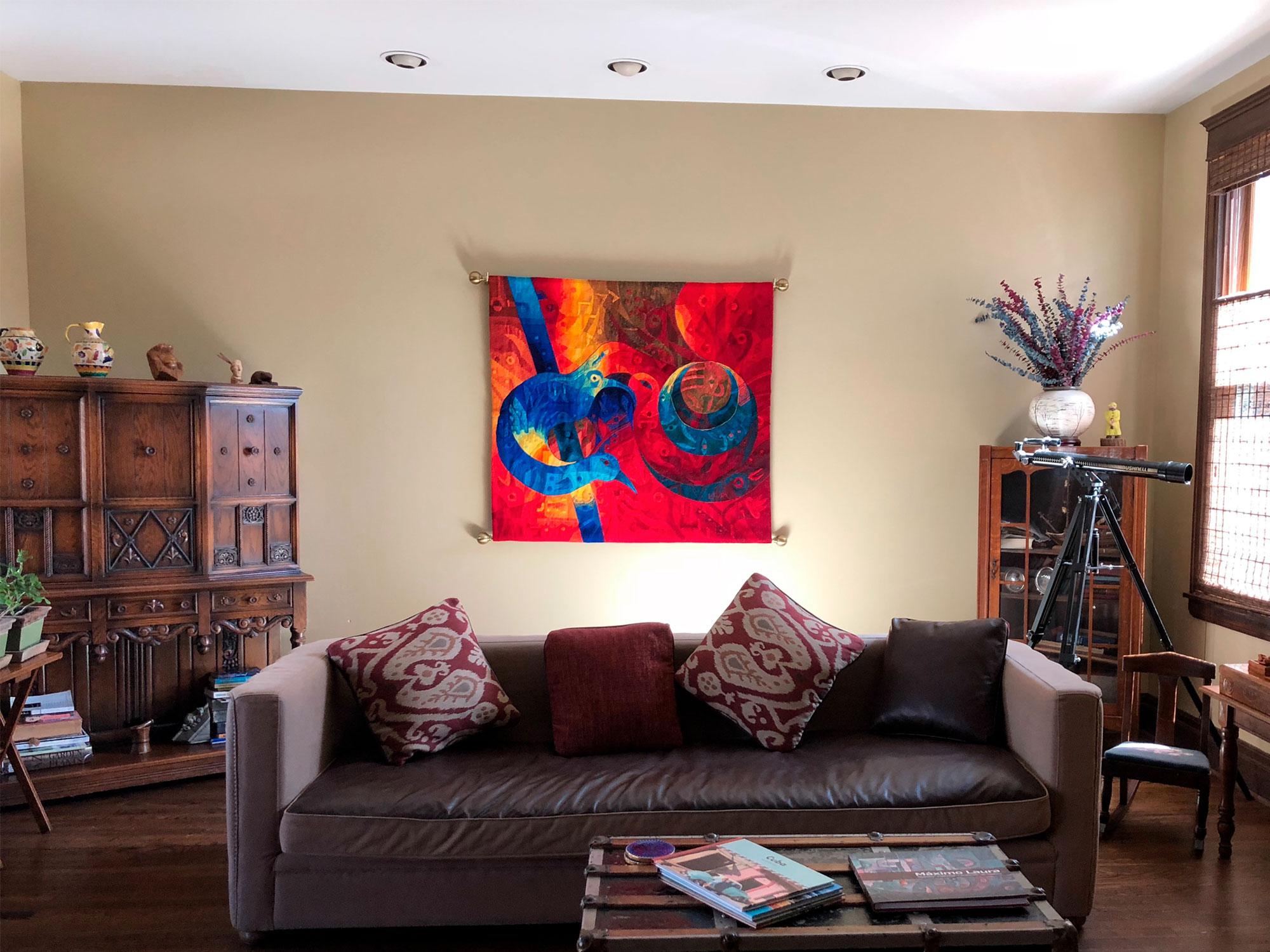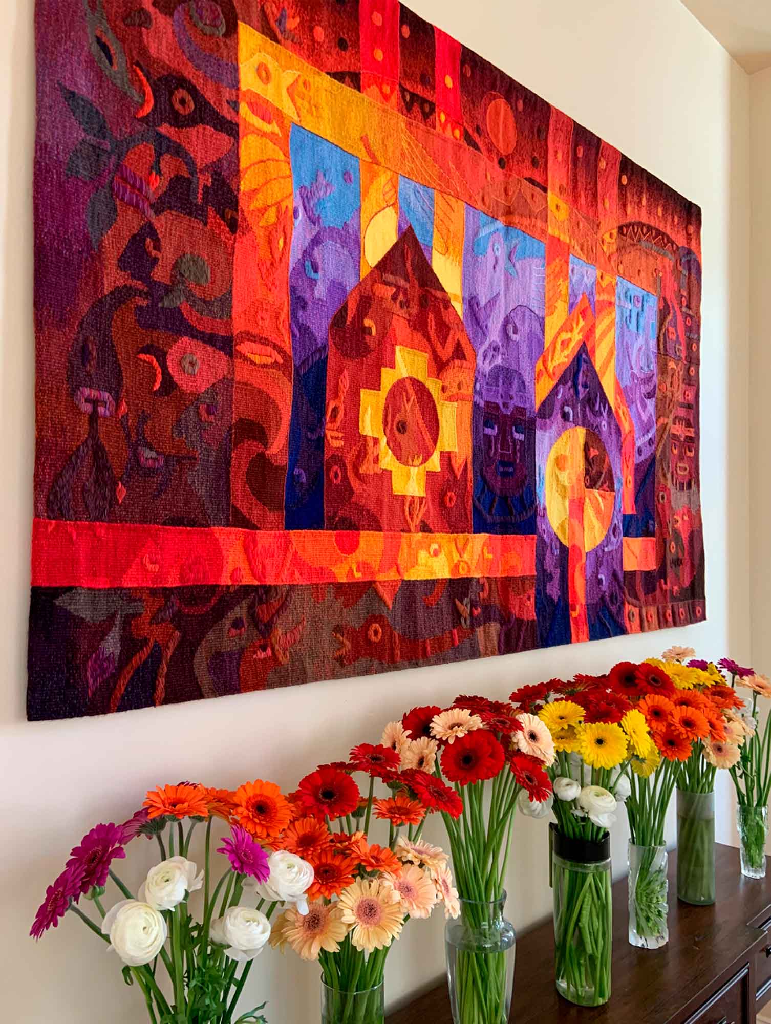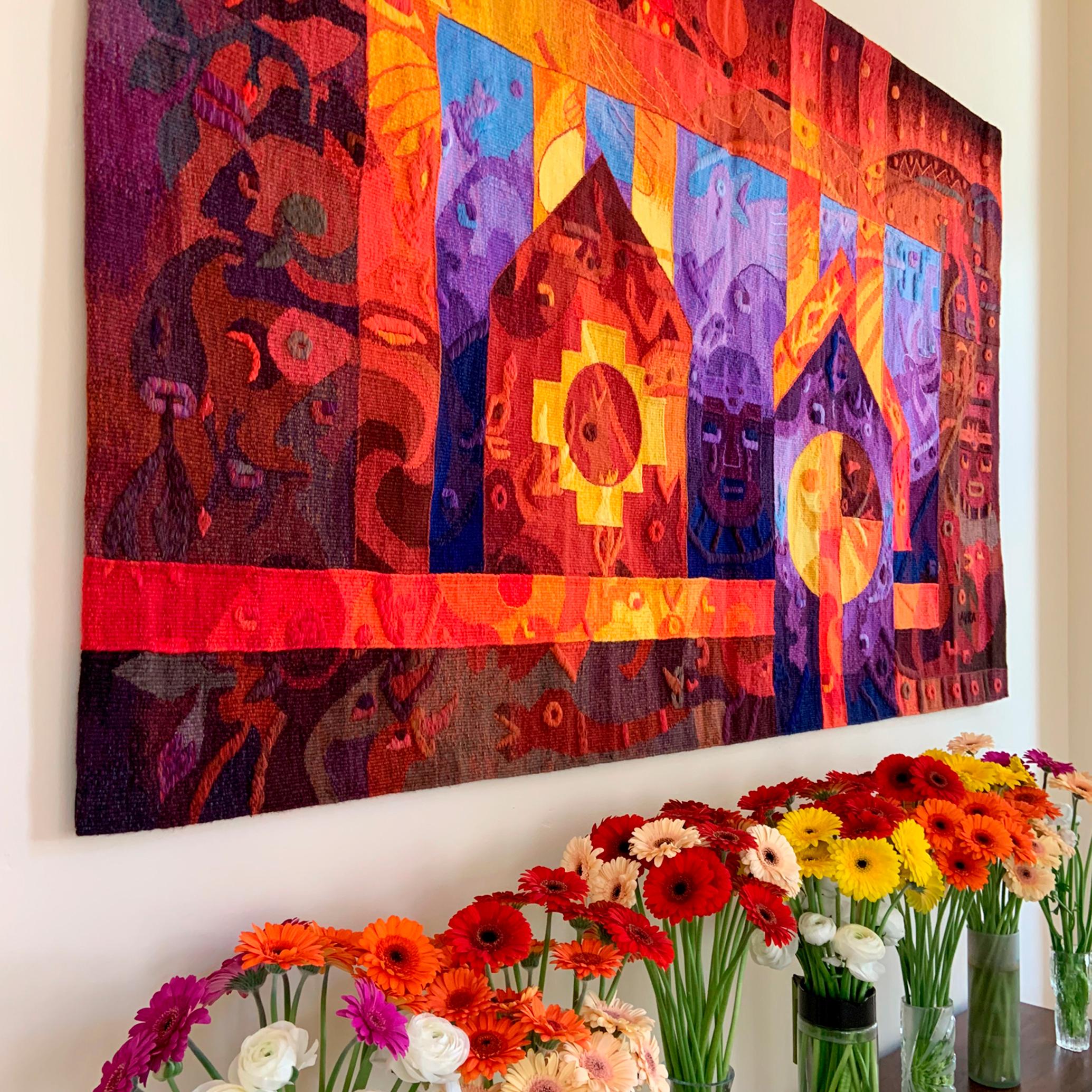 When visiting Peru my friend bought a tapestry from the gallery and had it shipped with no problems and once had it mounted in his new house I knew I had to have on for myself. At dawn as the sun rises the flames in the tapestry come alive - it´s my favourite time of day."