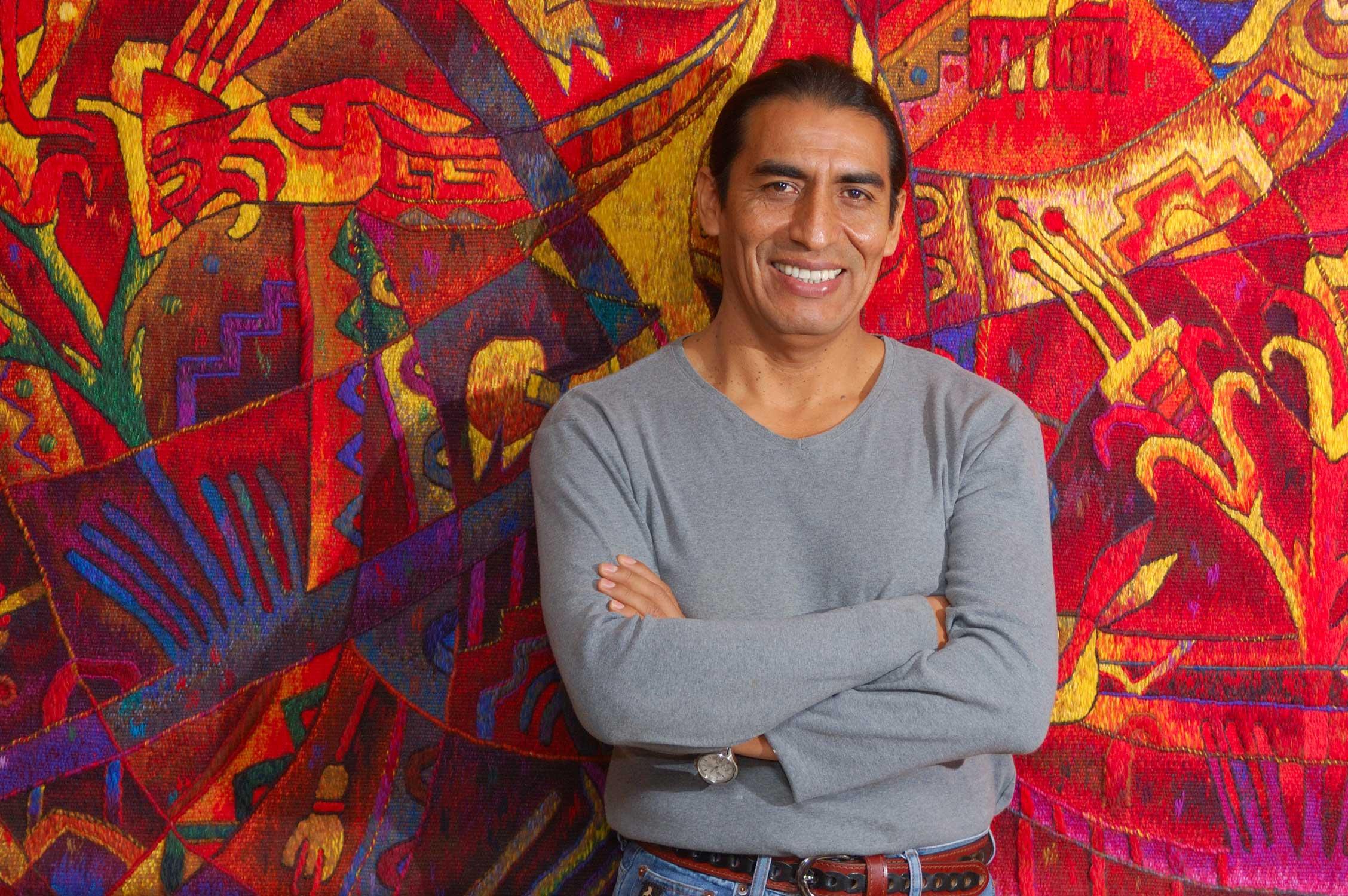 Maximo Laura (Ayacucho, Peru), is an award winning tapestry weaver internationallly recognized as one of South America´s pre-eminent and most unique textile artists. He is a consultant, designer and lecturer on art integration and synthesis of ancestral weaving techniques, symbols, memories, myths and rituals with contemporary art.