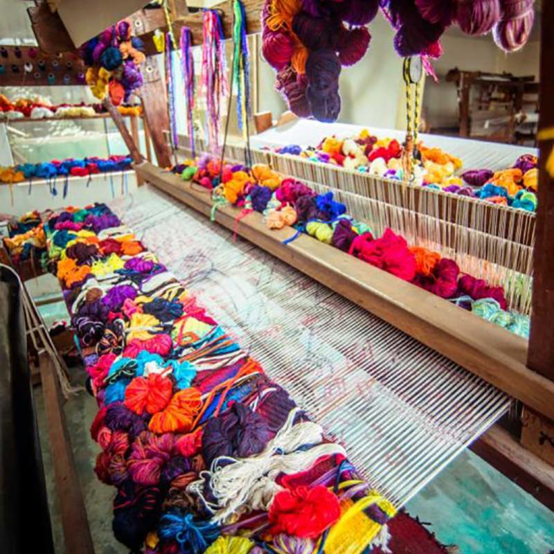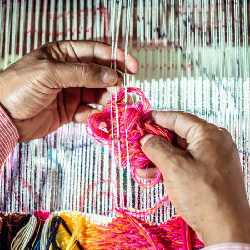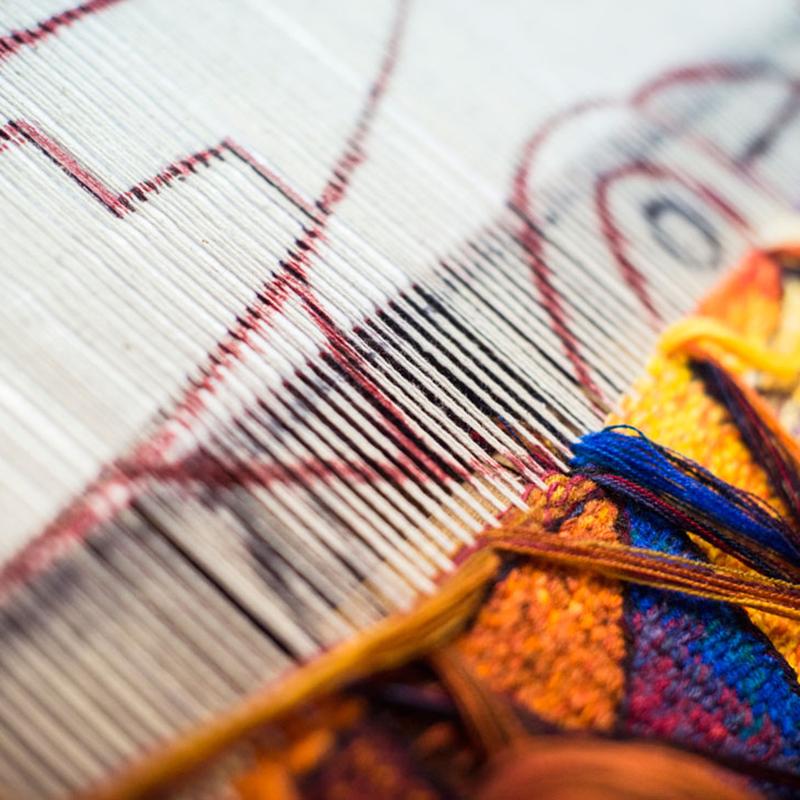 All Maximo Laura Tapestries are handwoven on a floor loom by a selected group of Master Weavers who have been trained by Mr. Laura on his own techniques. In Peru, tapestry weaving is an art that is transferred from generation to generation through family, so most of the Master Weavers who work with Mr. Laura have a background in traditional tapestry and have been trained by Maestro Laura to learn his techniques and process.