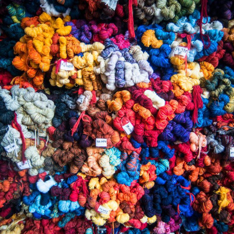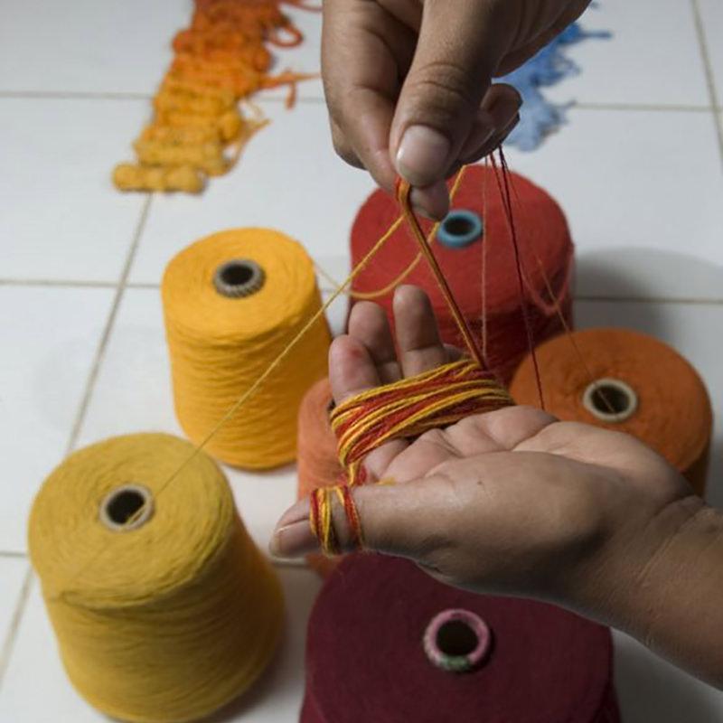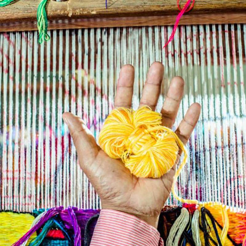 Once the line drawing and colored image are ready, the design will go to the Color Laboratory where a specialist will hand-blend the colors to create what Mr. Laura calls “butterflies” of yarn, which will be the yarn used to weave the tapestry.Each “butterfly” is created by hand-mixing single or multiple solid color threads to match the required tones of a tapestry, creating the bright and vibrant color combinations and tones for which Maximo Laura is known for. This special process is also the reason why if one sees an specific point in a Maximo Laura Tapestry, one will always find a variety of colors in a very small space, making it very hard to find solid colors within the piece.