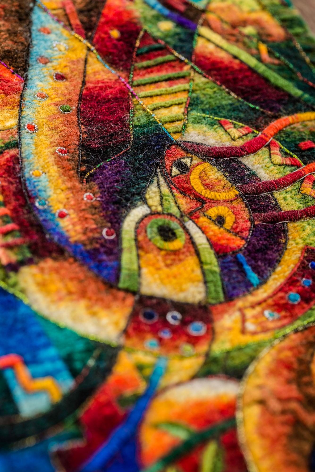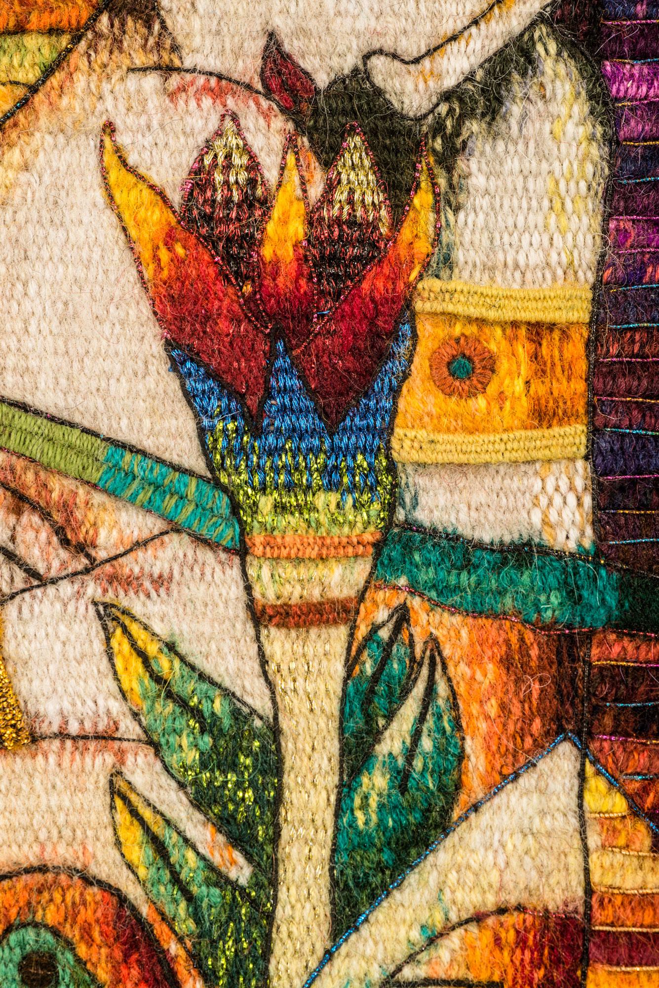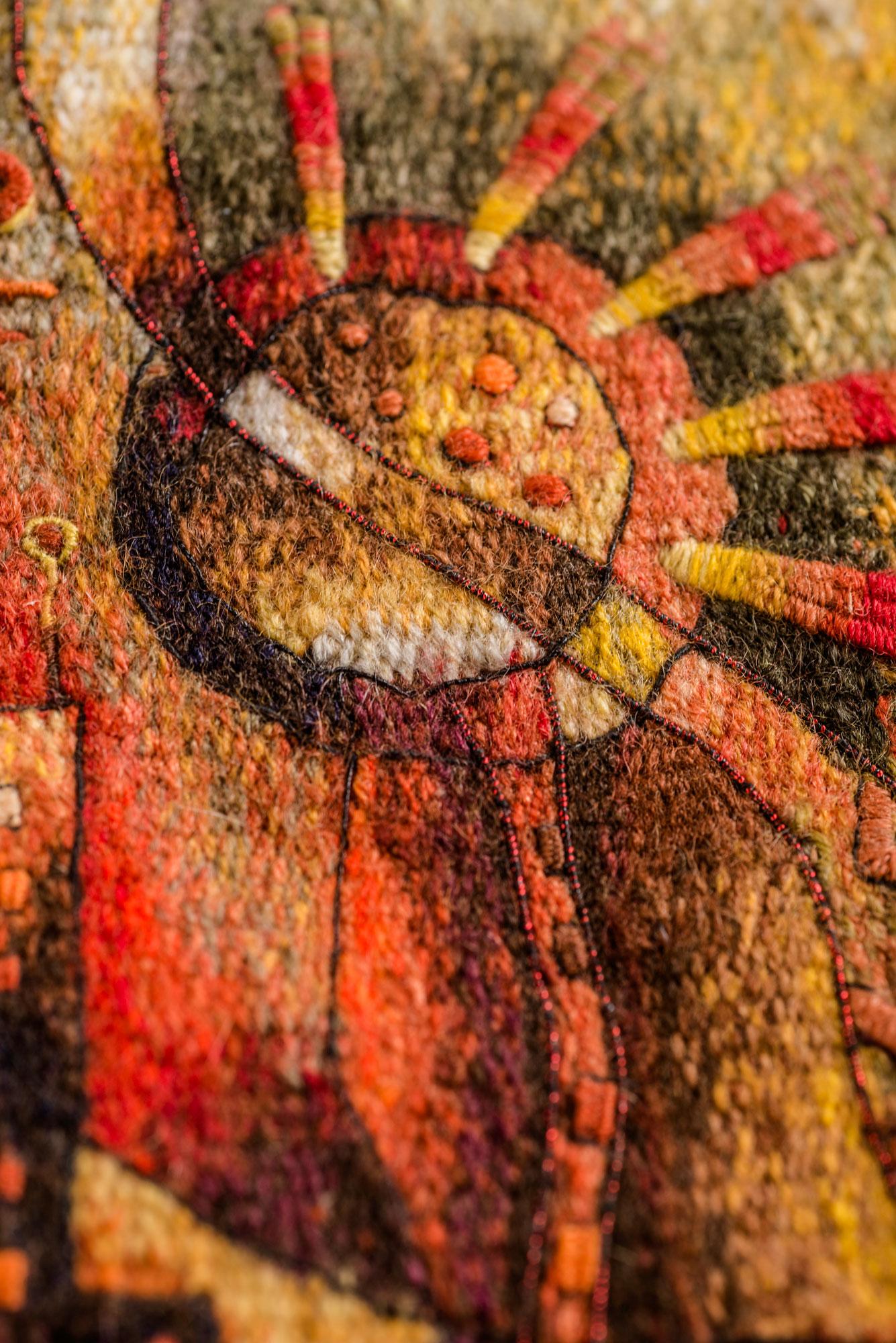 Before your tapestry can be sent, it will be put through a cleaning and stretching process to give it elasticity. Once this has been done, a Certificate of Authenticity is sewn onto the back, and it is signed by Maximo Laura. Your tapestry comes with two sleeves in the back, so it is ready to be hung by the method of your choice.