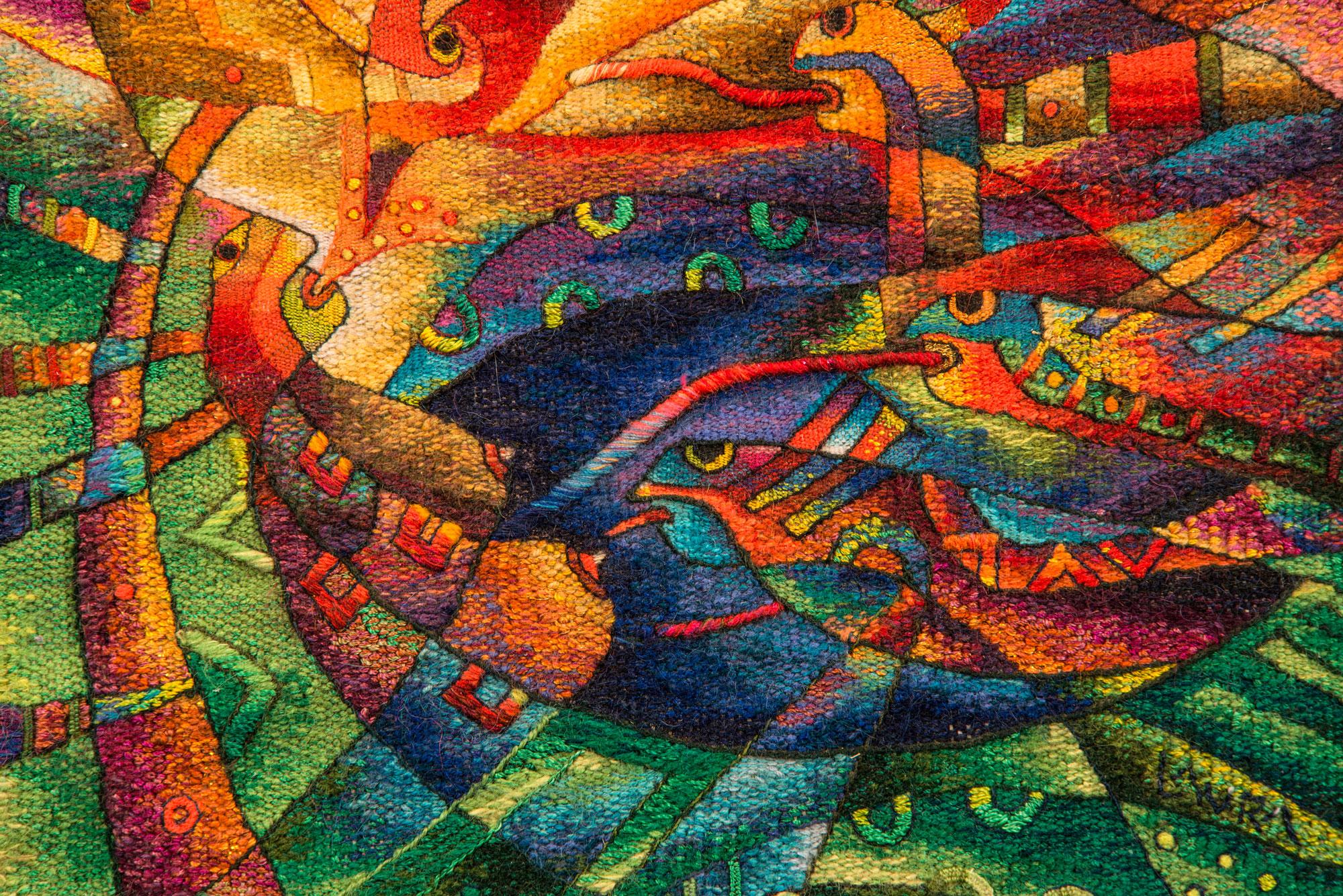 At Maximo Laura, we have created our unique contemporary tapestries using the millenary technique. This uses blended yarn rather than the solid colored yarn used traditionally. Unlike the traditional weaving methods, this gives our Peruvian tapestries a 3D effect where the art can be fully explored and touched. It also gives the tapestry a great modern twist and adds a beautiful aesthetic to any wall space. Browse our range of designs in our online contemporary tapestry gallery.