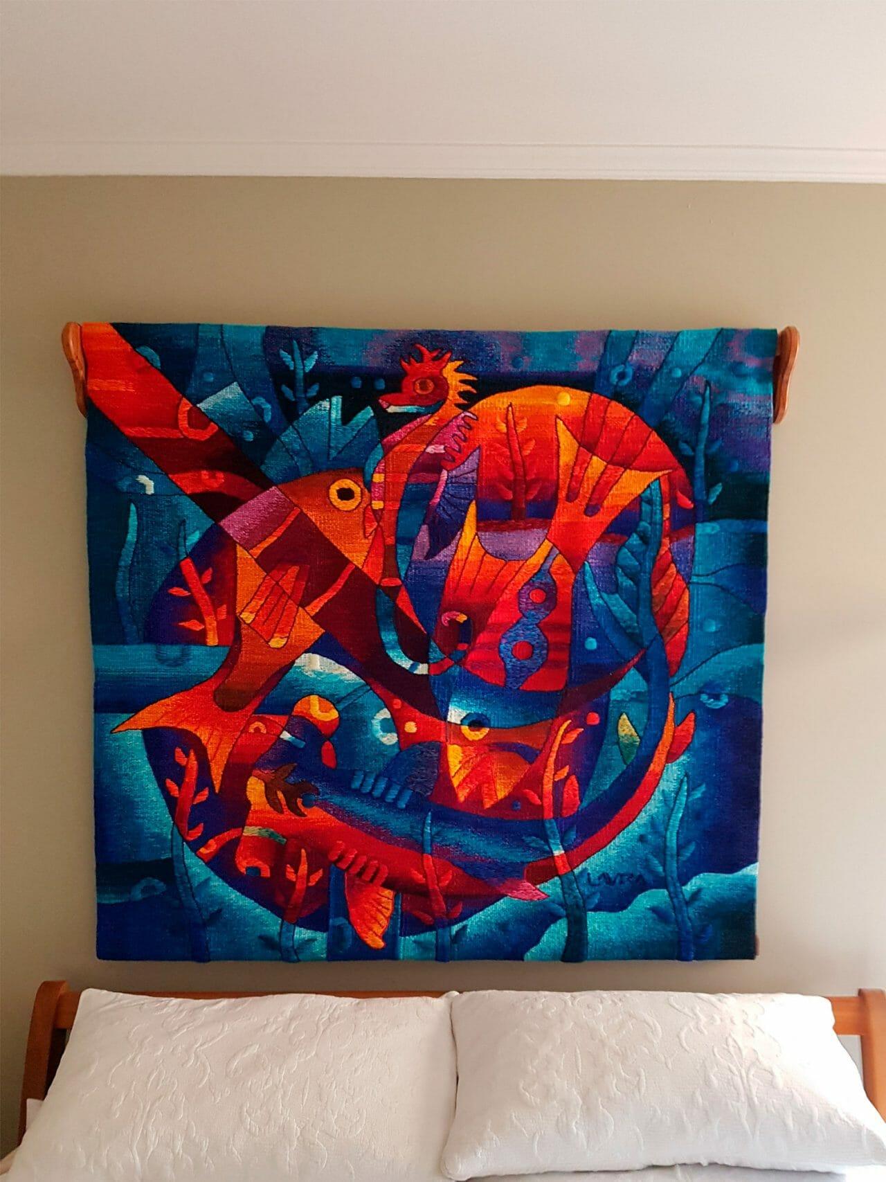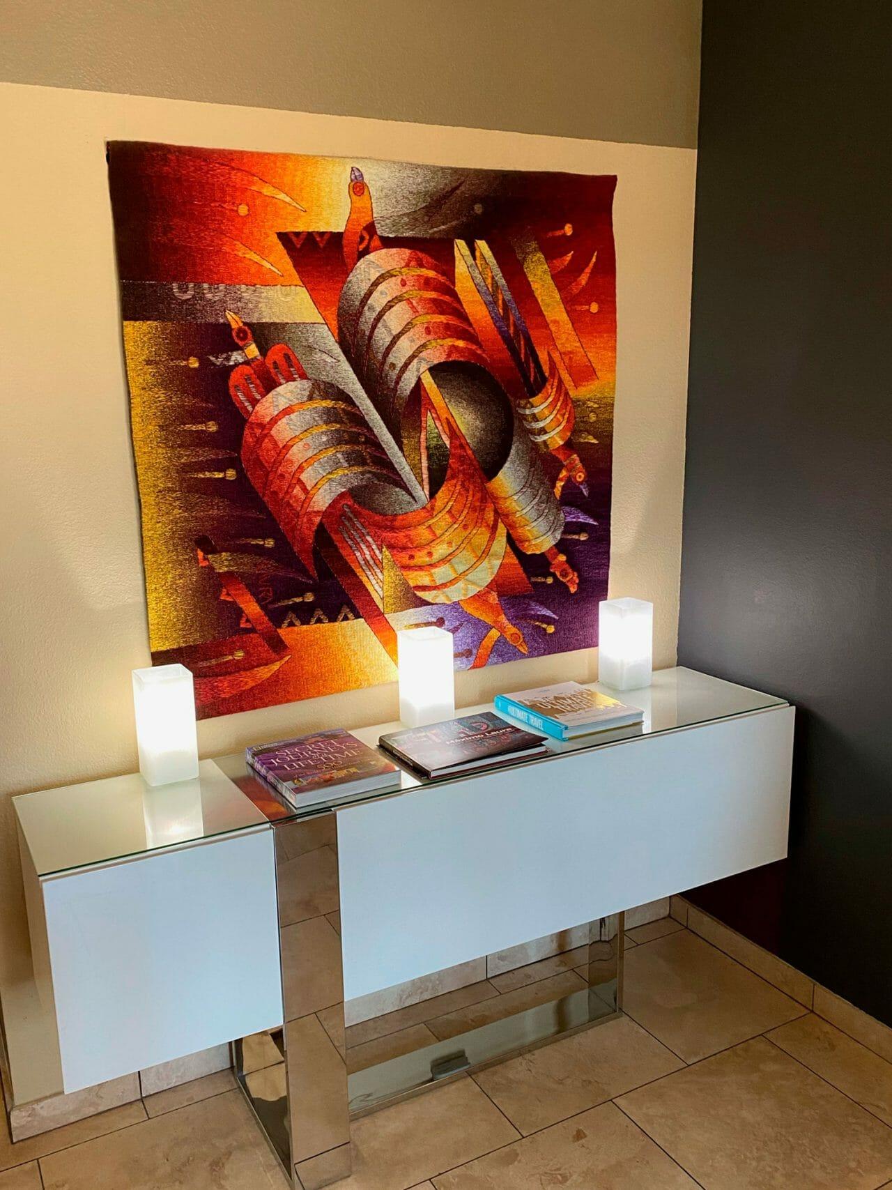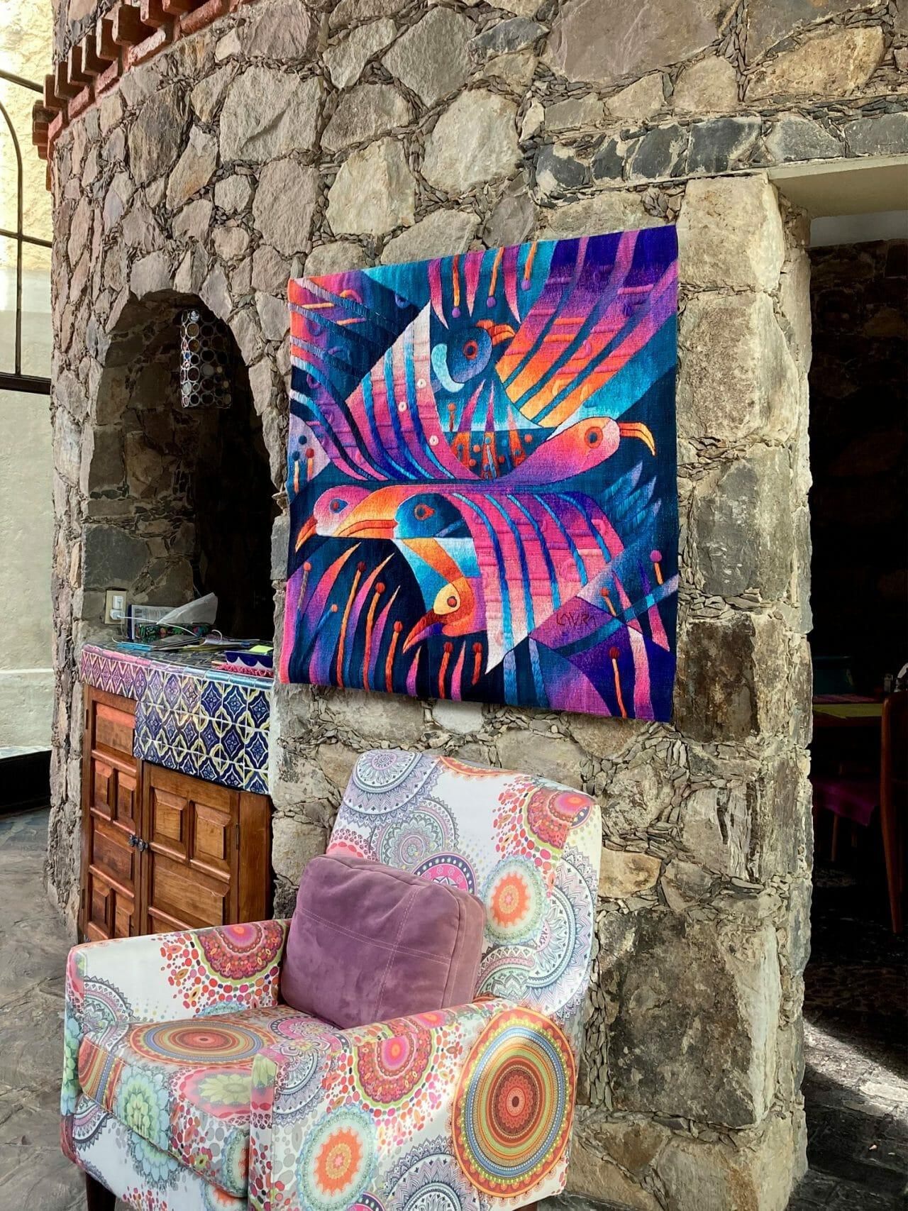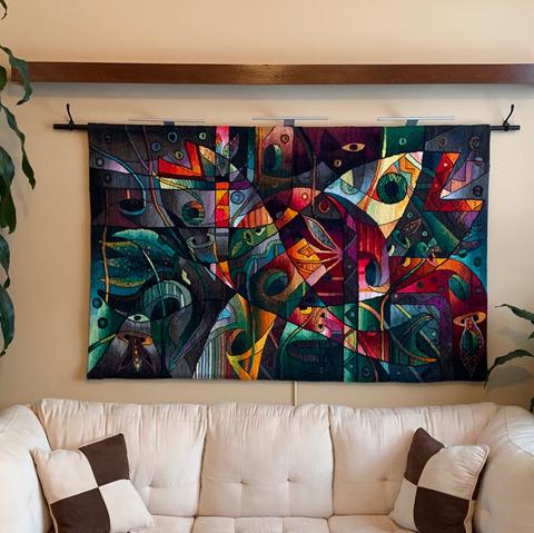 Maximo Laura (Ayacucho, Peru), is an award winning tapestry weaver internationally recognized as one of South America´s pre-eminent and most unique textile artists. He is a consultant, designer and lecturer on art and contemporary Andean textile design. His work is the integration and synthesis of ancestral weaving techniques, symbols, memories, myths and rituals with contemporary art.
