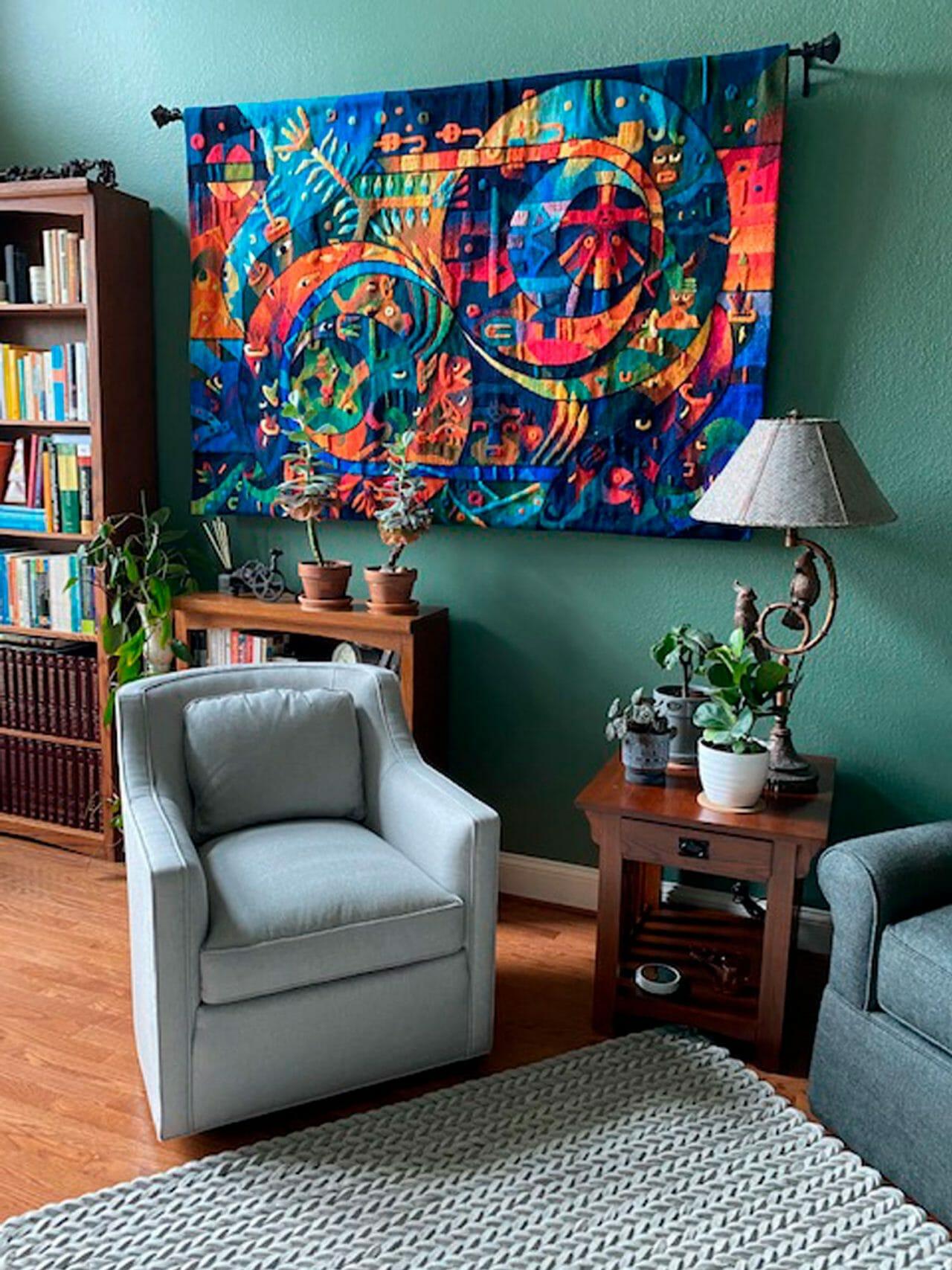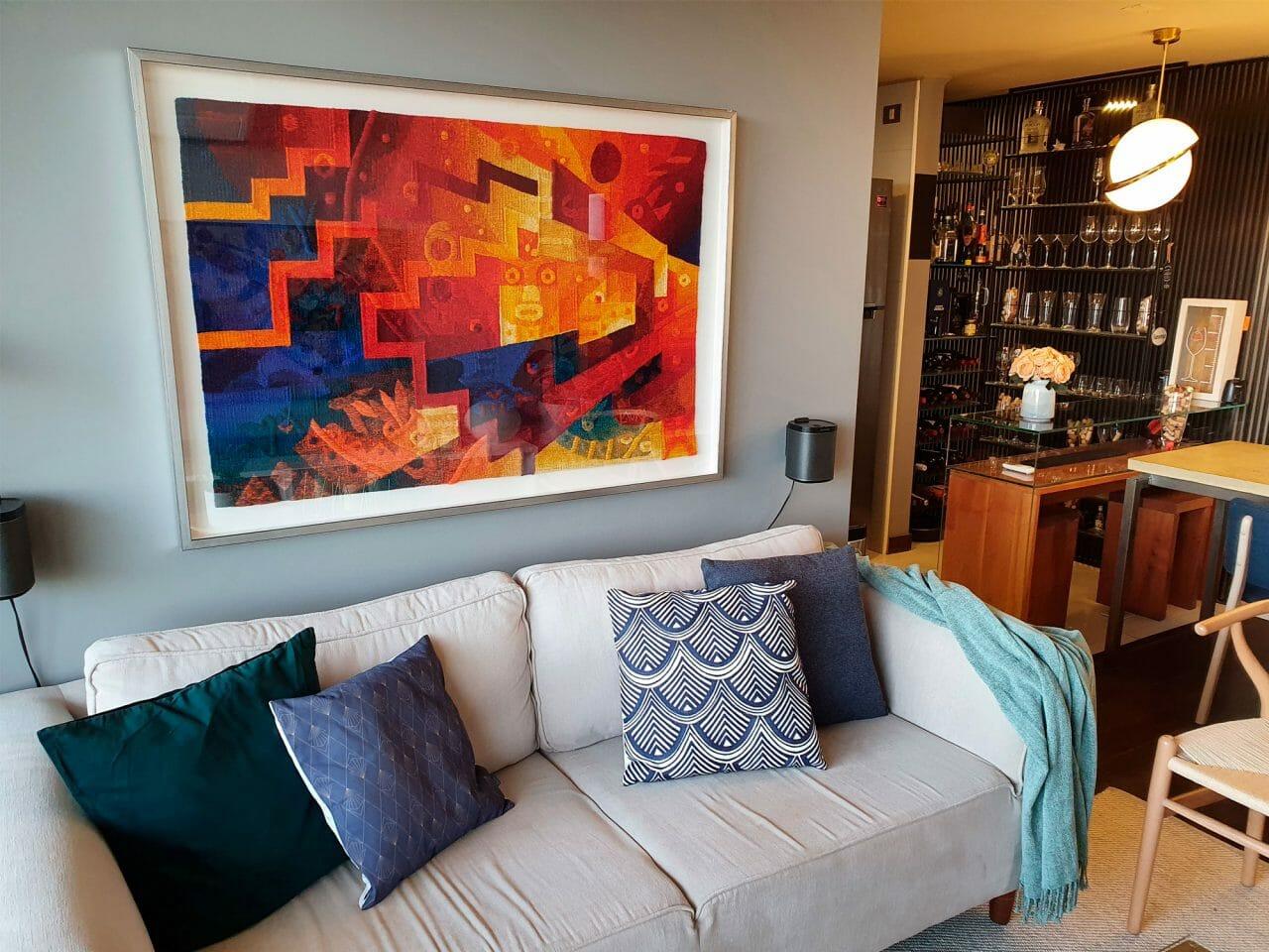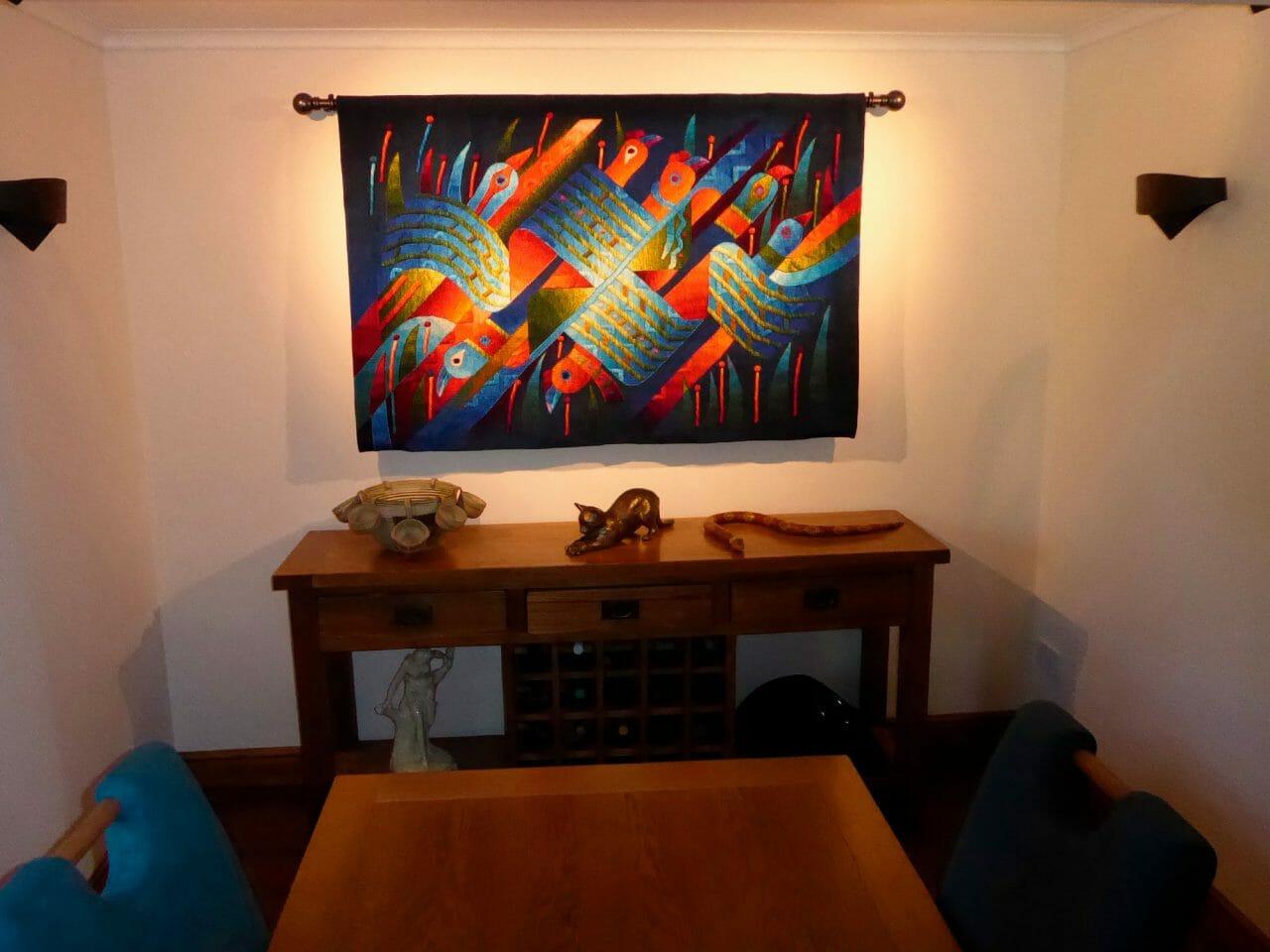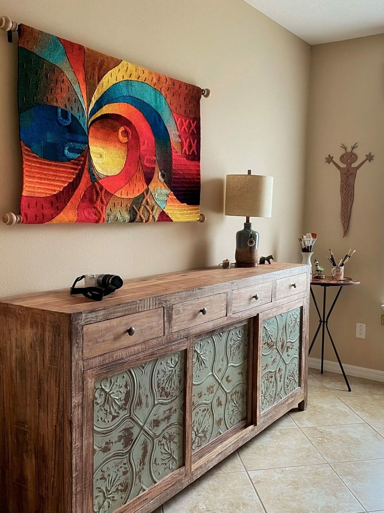 Maximo Laura (Ayacucho, Peru), is an award winning tapestry weaver internationally recognized as one of South America´s pre-eminent and most unique textile artists. He is a consultant, designer and lecturer on art and contemporary Andean textile design. His work is the integration and synthesis of ancestral weaving techniques, symbols, memories, myths and rituals with contemporary art.