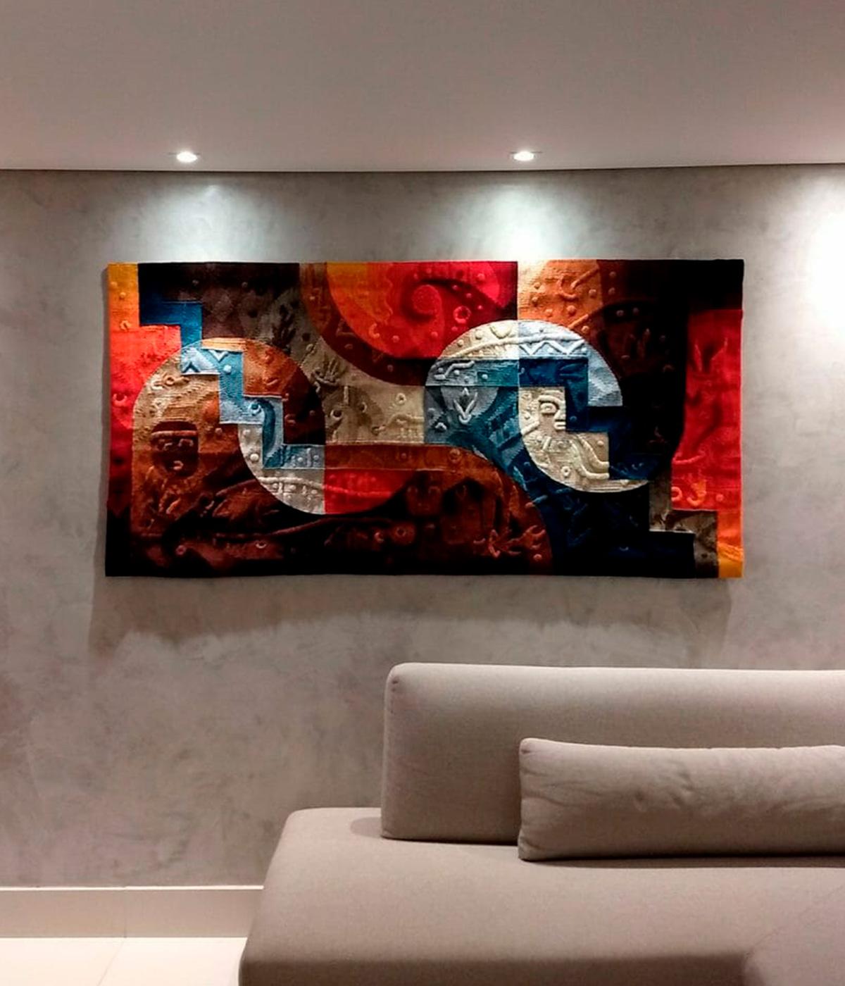 Regrettably, the existing Andean culture is not perceived in the same light as, say, Chinese or Japanese culture. The cosmic view is still very current; there are rites, myths, and visions. The spirit of Andean culture is still alive, although threatened with extinction. Above all, Maximo hopes to contribute to its survival: “Our modern society tells us that it’s everyone for themselves. However, we always talk about “us,” although we know that two or three brains cannot be woven together.” As regards his choice of color, he says, “In my work, I use colors as sources of energy and vitalizers—light is energy.”